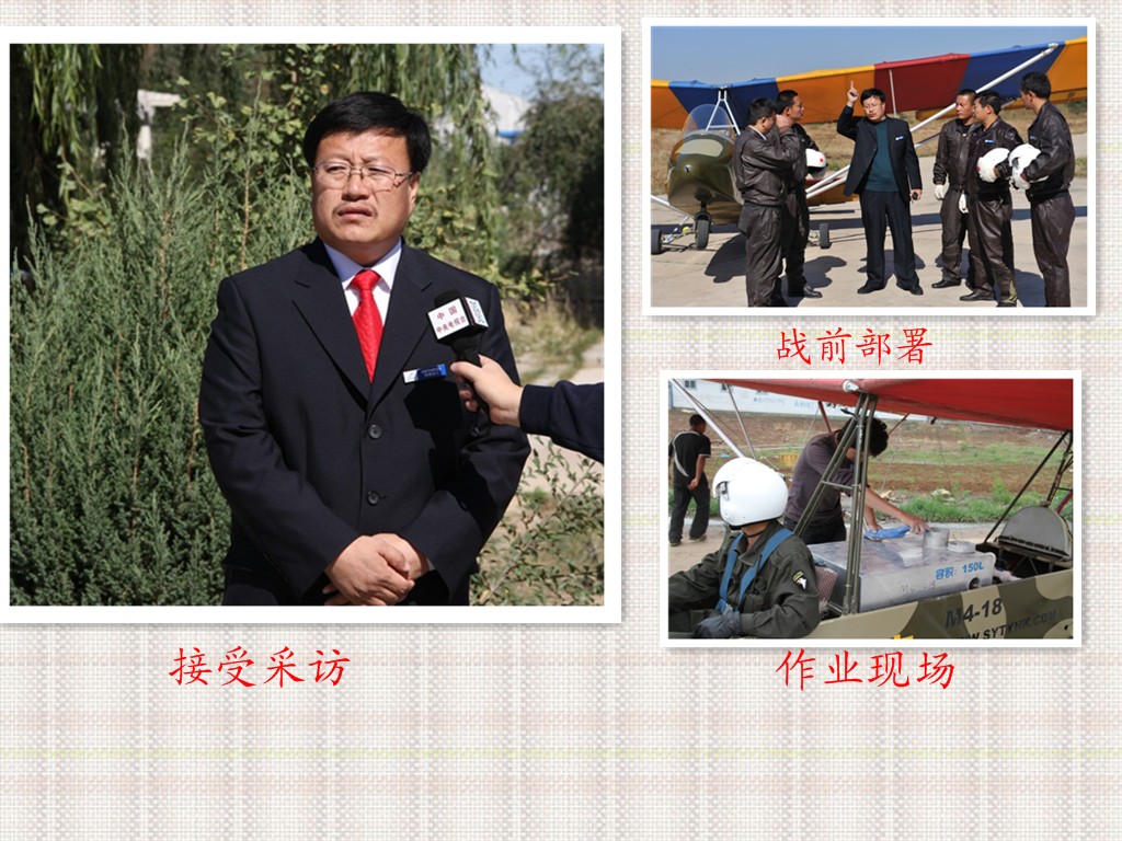 ,而是毅然決然的走上里一條充滿艱辛的打拼之路,在別人笑之為天方夜譚的情況下,1999年四處投親靠友籌集資金從北京航空航天大學(xué)購進了一架蜜蜂4超輕型飛機,與此同時它成就了內(nèi)蒙古自治區(qū)第一個私人擁有飛機的人,飛機有了,他東奔西走,開始學(xué)習(xí)、探索、研究制作超輕飛機飛機播種和飛機滅蟲設(shè)備,經(jīng)過4年的反復(fù)試驗,終于在2003年設(shè)備試驗成功,但沒有相關(guān)手續(xù)私人飛機不允許私自飛行,于是成立航空公司的想法在心中勾畫,他開始了中國第一家超輕型飛機通用航空公司的籌建工作,一己之力不可成江河,于是他伙同一直支持他的妻子四處請專家、找能人,終于在2006年經(jīng)過三年努力國家民航華北地區(qū)管理局為其頒發(fā)了通用航空公司籌建許可證,于是他又四處籌措資金,投入到籌建工作之中,2008年六月經(jīng)民航華北地區(qū)管理局驗收合格并頒發(fā)通用航空運營許可,與此同時他的飛機播種、飛防滅蟲兩項實用新型專利獲得通過,國家知識產(chǎn)權(quán)局頒發(fā)了實用新型知識產(chǎn)權(quán)證書。(鏡頭七)設(shè)備特寫(包括專利證書)邱志剛一個不屈不撓的東北漢子,在平凡的人生道路上創(chuàng)造了不平凡的業(yè)績,創(chuàng)造了不平凡的人生價值。創(chuàng)造了人生的豪邁與神奇。