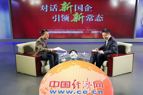 中航通飛華北飛機(jī)公司董事長(zhǎng),黨委書(shū)記張樞瑋做客《中經(jīng)在線訪談特別節(jié)目——對(duì)話新國(guó)企,引領(lǐng)新常態(tài)》。裴小閣/攝