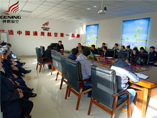 2019年2月18日,在春節(jié)長(zhǎng)假后的第一個(gè)工作日,通遼市神鷹通用航空有限公司組織全體員工在子公司通遼市神鷹飛機(jī)制造有限公司召開了新年度工作動(dòng)員大會(huì)。